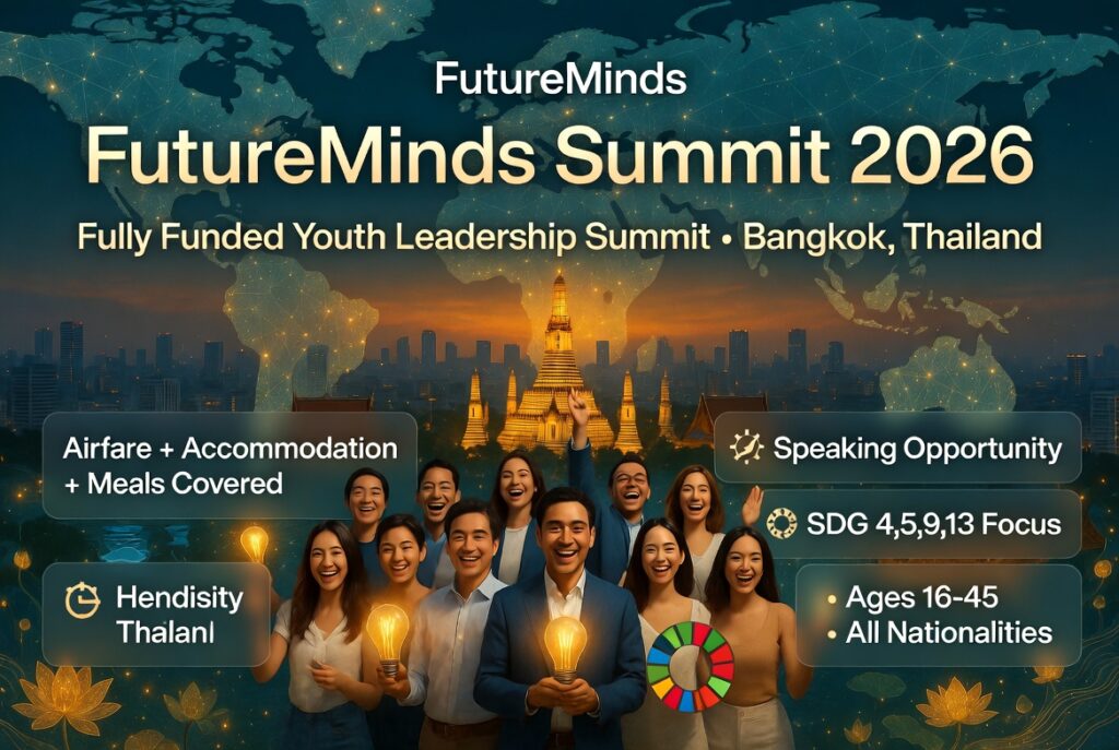 Are you a young changemaker between 16 and 45 years old who wants to tackle global challenges like quality education, gender equality, innovation, and climate action? The FutureMinds Summit 2026 in Thailand is your golden ticket to an unforgettable, fully funded international youth summit in Bangkok.