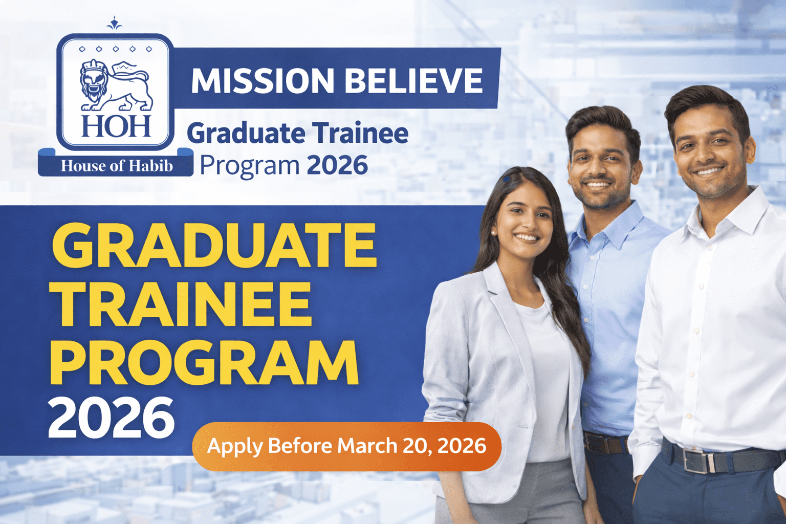 If you are a motivated fresh graduate looking for a dynamic and challenging environment, the House of Habib – Mission Believe Graduate Trainee Program 2026 in Karachi is an excellent opportunity to kickstart your professional journey.
