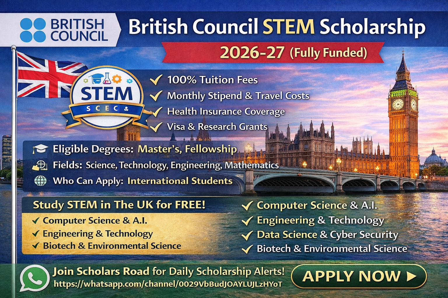 Read MoreBritish Council STEM Scholarship 2026β27 (Fully Funded) | Apply Now