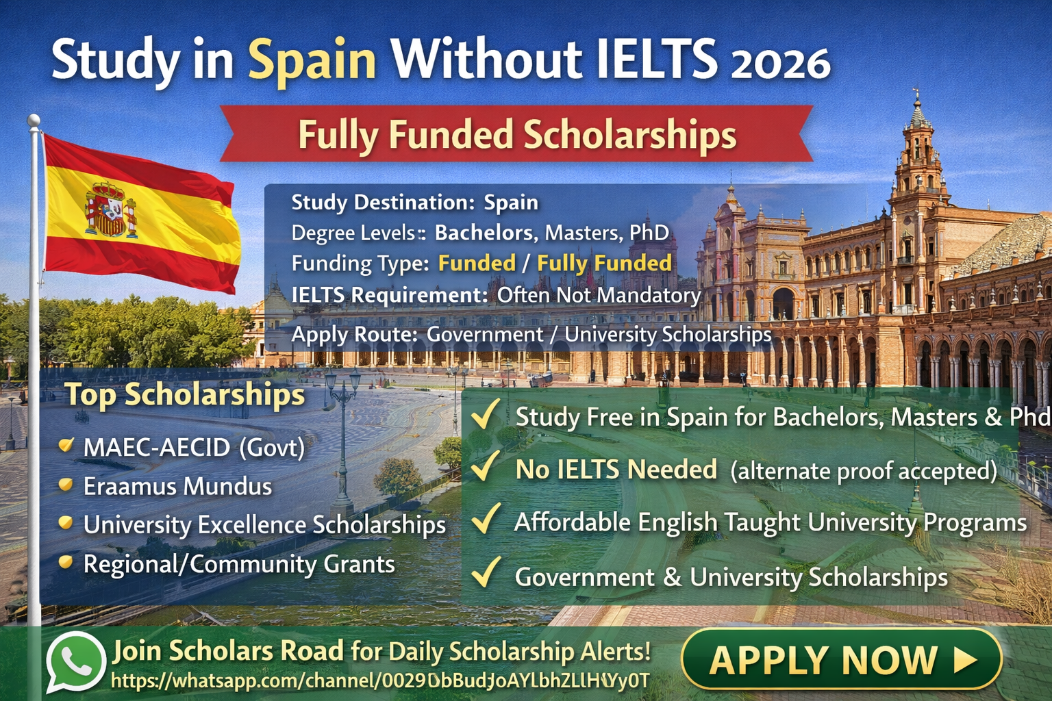 Read MoreStudy in Spain Without IELTS 2026 (Fully Funded Scholarships) β Complete Guide for International Students