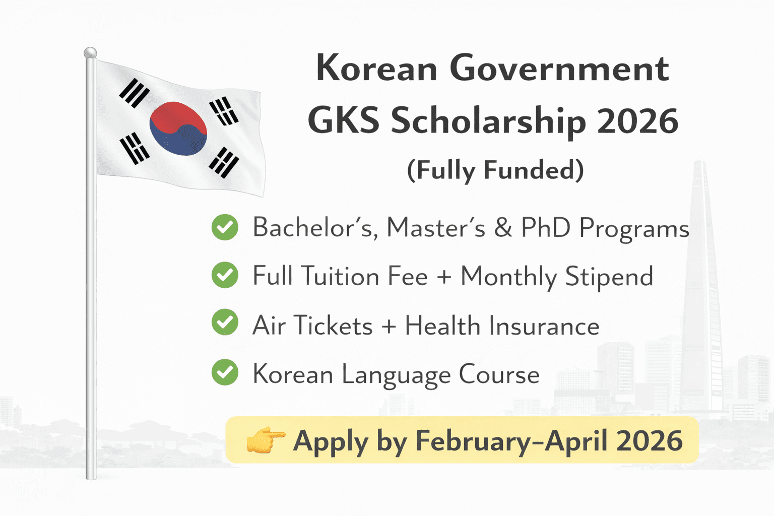 Read MoreKorean Government GKS Scholarship 2026 (Fully Funded) β Apply Now