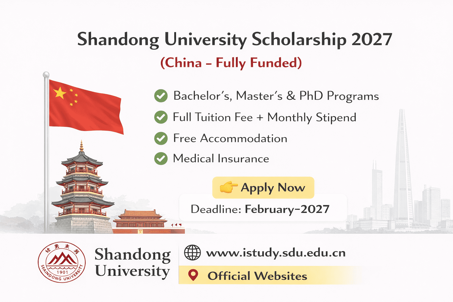 Read MoreShandong University Scholarship 2027 in China (Fully Funded) β Apply Now