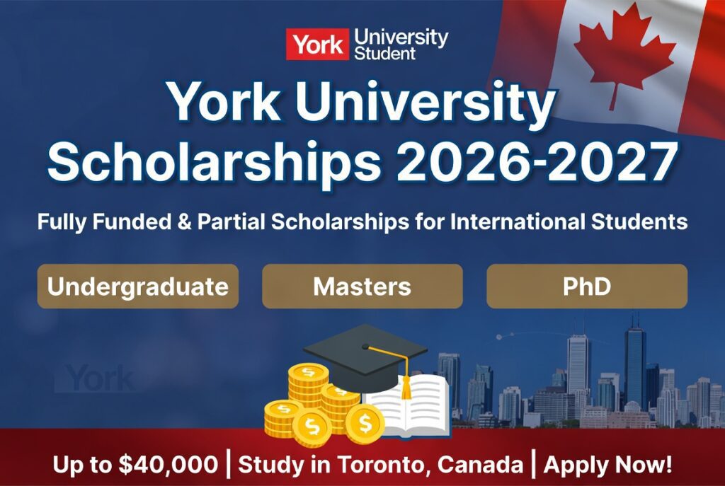 Keywords: York University Scholarships 2026, Canada Scholarships for International Students 2026-2027, Fully Funded Scholarships York University, Undergraduate Scholarships Canada, Masters Scholarships York University, PhD Scholarships Toronto.
